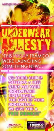 DUBLIN NIGHTCLUB TRAMCO is offering a free drink to customers who hand over their underwear at an event being held tonight.