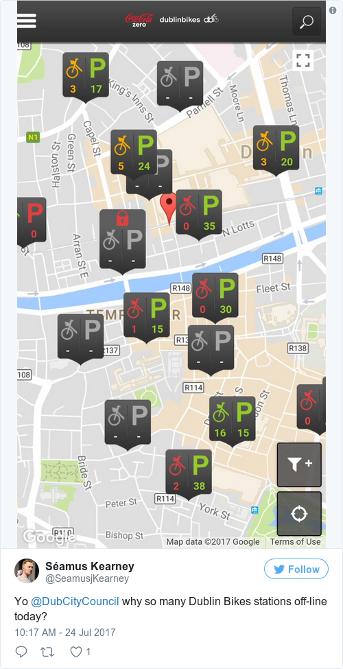 “Our data communications provider resolved this issue earlier this morning and all of the Dublinbikes stations are now operating,” it said.