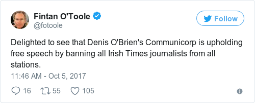 In a column last month, Irish Times journalist Fintan O’Toole pledged that he would not be appearing on Newstalk in future, claiming it had become “the most flagrantly sexist public organisation in Ireland”.
