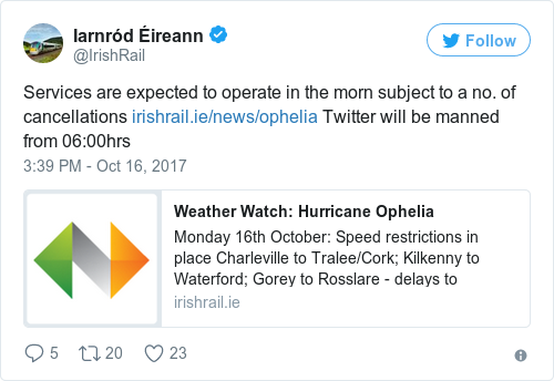 Irish Rail announced that a number of routes would be cancelled or operating at a reduced service.
