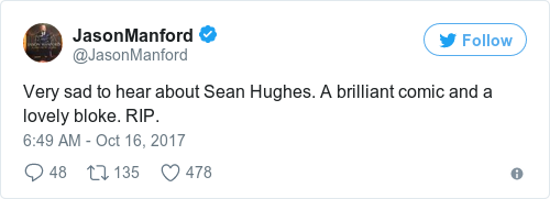 Fellow comedians were quick to pay tribute to Hughes on Twitter.