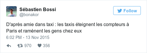 Reports on Twitter suggest that taxis in Paris are bringing people to their destinations for free at present.