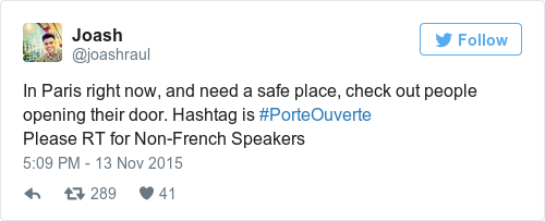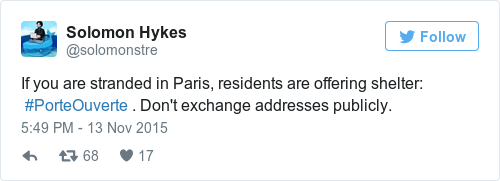 Residents of Paris are offering refuge to anyone stranded in the city tonight, using the #PorteOuverte (Open Door) hashtag: