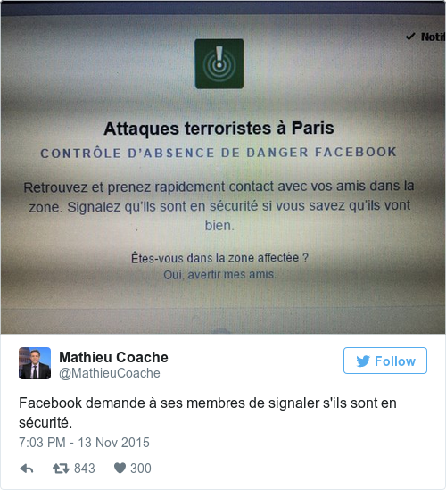 Facebook currently has a tool in place for its users to inform their friends that they are alright following tonight’s attacks.