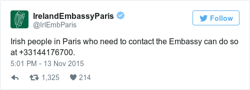 Any Irish in Paris can also contact the Embassy on +33144176700.