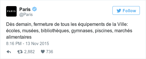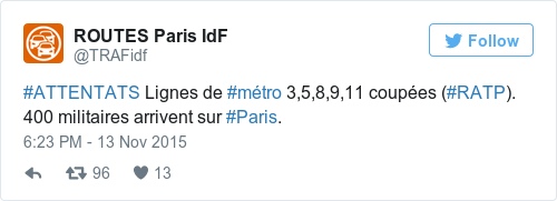 More evidence that tonight’s horror has effectively placed the city of Paris on lockdown.