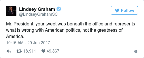 Mr. President, your tweet was beneath the office and represents what is wrong with American politics, not the greatness of America.
