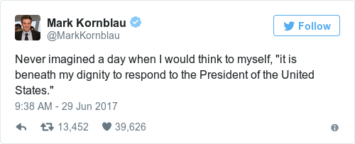 Never imagined a day when I would think to myself, ‘it is beneath my dignity to respond to the President of the United States.’”