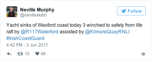 The 37ft yacht was unable to be recovered and sank near the Saltee Islands, off Kilmore Quay.