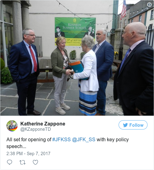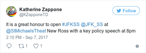 Minister Katherine Zappone is making a speech at the opening of the Kennedy Summer School.