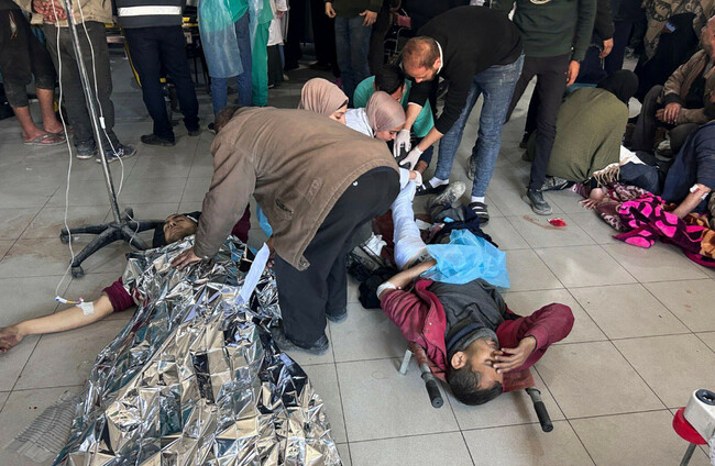 Palestinians wounded on the beach are treated in Shifa Hospital Alamy