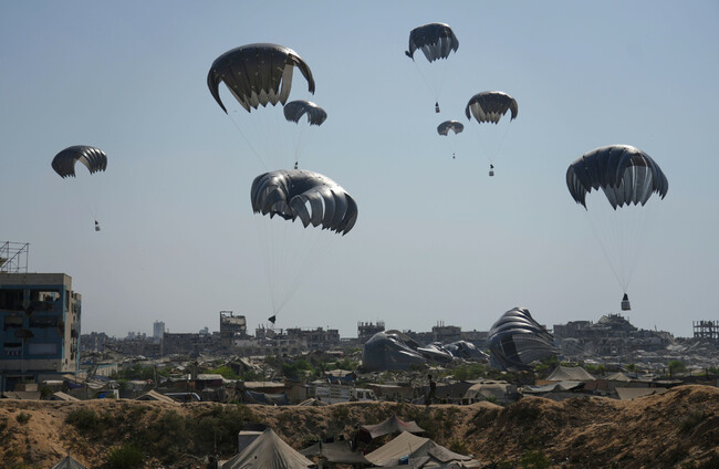 Humanitarian aid is airdropped to over Gaza City today Alamy Stock Photo