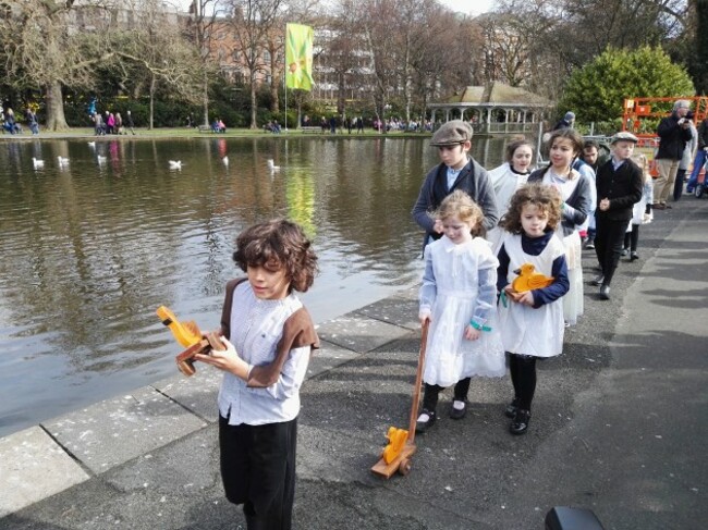 In St Stephen’s Green park, a group of children aged four to 11 from the Rainbow Drama School in Donnycarney treated crowds to the ‘Procession of Ducks’. This was a reference to the truce observed by both sides during the fighting so that the ducks in the park could be fed.