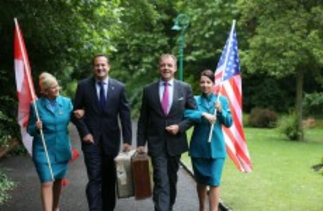 cabin crew Sarah Nolan with Minister for Transport, Tourism & Sport Leo Varadkar and Christoph Mueller, Chief Executive, Aer Lingus and cabin crew Kara Sisk. Jason Clarke