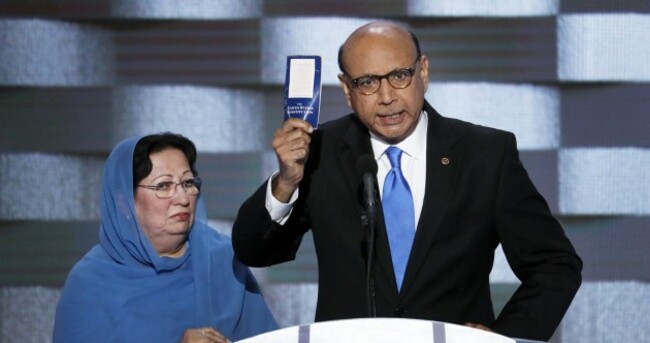 The father of a soldier killed while overseas as part of a US mission offered the then presidential nominee Donald Trump his copy of the American constitution in a powerful speech on what it means to be an American citizen.