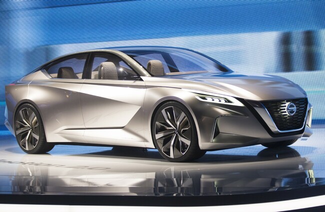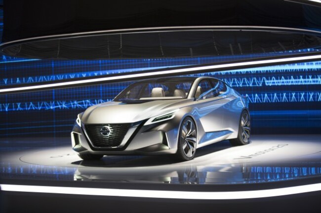 This striking concept is the Nissan Vmotion 2.0. We’re told the inspiration for the design came from modern architecture and the idea of futuristic private jets. It previews the future design of Nissan saloons and showcases the evolution of the signature “V-motion” front design seen on many of today’s Nissan vehicles.