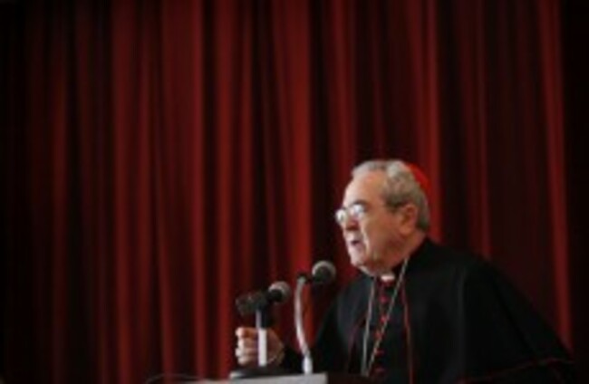 Cardinal Justin Rigali Archbishop of Philadelphia speaking in May 2010. AP Photo/Matt Rourke