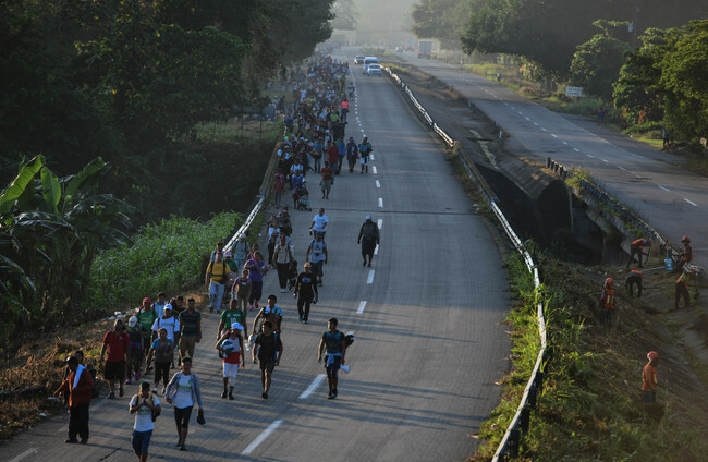 File photo - Thousands of Central American migrants making their way to the US border last October Miguel Juarez Lugo