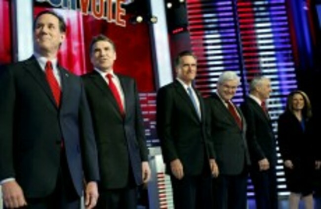 Six of the seven candidates in the running for the Republican nomination for the US presidency. (Not pictured: Jon Huntsman) Charlie Neibergall/AP/Press Association Images