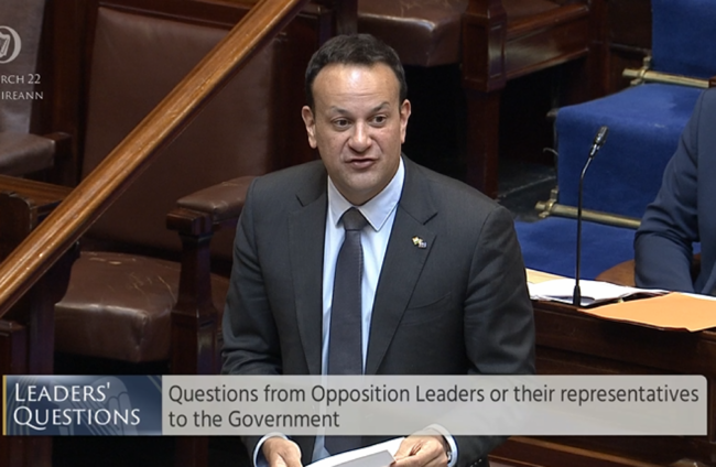 Tánaiste Leo Varadkar speaking during Leaders Questions this afternoon Oireachtas TV