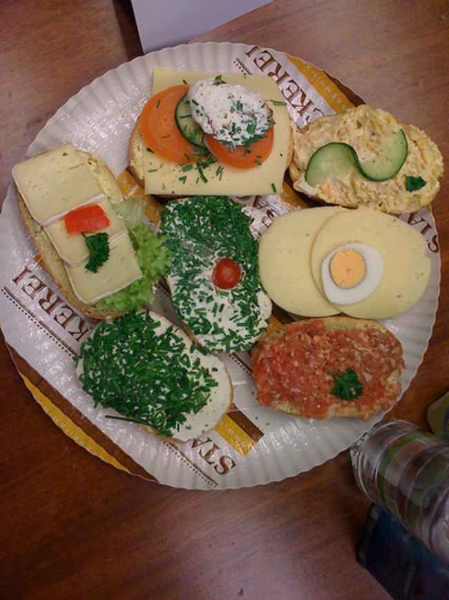 These open-face sandwiches look pretty normal, until you realise the one on the bottom right is made with raw meat. Not for the faint-hearted… or those with sensitive stomachs.