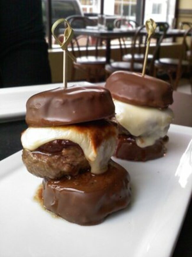 Sorry if this upsets your chocolate buzz, but this creation from a restaurant called Adsum in Philadelphia, USA, is the zenith of not-rightness. The chocolate bit is a confectionary in the US called a TastyKake, with cherry jam and a cheeseburger in between the two halves. That restaurant is now closed.