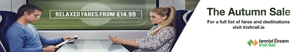 Make the most of Autumn by availing of Iarnród Éireann’s relaxed fares on nationwide routes. Beautiful scenery, romantic getaways or weekend trips with friends are all close at hand. Remember to book online at Irish Rail and find special rates as low as €14.99.