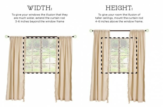 Hanging your curtains or blinds above your window frame, closer to the ceiling can give you that illusion of higher ceilings.