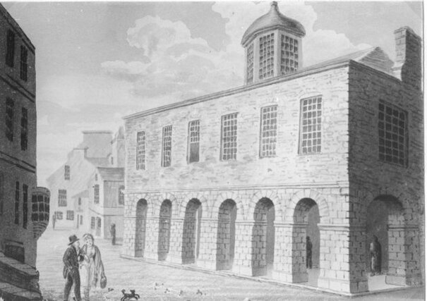 The Tholsel once stood on Shop Street in Galway city. Construction started on the building in 1639 and it was demolished around 1822. (Image: Archiseek.com)