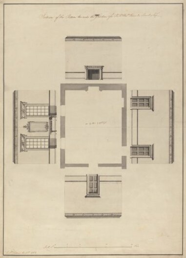 Here are the interior designs for remodeling Langford House on Mary St., Dublin. The large five bay, four story house was bought by Rt. Hon. Hercules Langford Rowley in 1743. It had a street frontage of almost 90ft, and was sited where the current Marks & Spencer store is today. In 1765, the architect Robert Adam designed new front and rear drawing rooms for Rowley. The house was demolished 1931. (Image: Archiseek.com)
