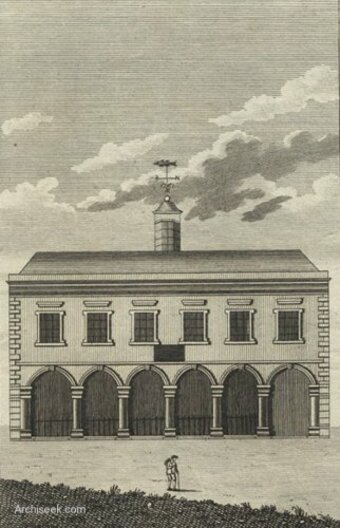 The Limerick City Exchange was built in 1673, close to St. Mary’s Cathedral to house the city’s covered market and council chamber. In 1702, the Exchange was demolished and replaced by a new larger building to allow for the development of wider streets in the city. During the mid-1800s, the Exchange fell into disuse after a new town hall was constructed across the bridge in Rutland Street. All that remains of the Exchange now is a row of Tuscan columns in the wall surrounding St. Mary’s graveyard. (Image: Archiseek.com)