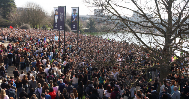Crowds protest at UCD in solidarity with abuse survivors after explicit image of student shared