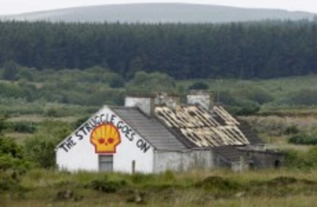 A Shell to Sea slogan painted on an abandoned house just outside of Rossport village in Co. Mayo [File photo] Photocall Ireland