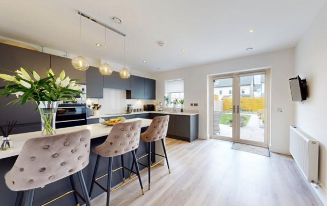 27 Clog Na Léinn is an energy-efficient detached house with four bedrooms. Spread across two levels, this modern property combines luxury with functionality. It features three full bathrooms, including two en suite bathrooms, ensuring privacy and convenience for everyone. Spanning 205 m² overall, the space comprises the open plan kitchen that’s home to a central island ideal for cooking and entertaining in. This is complemented by a spacious living and dining area.