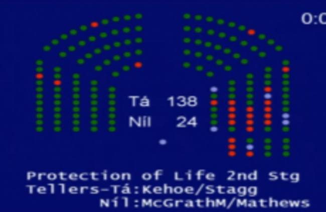 The Protection of Life during Pregnancy Bill passed a Dáil vote this evening by 138 votes to 24 with cross-party support and cross-party opposition.