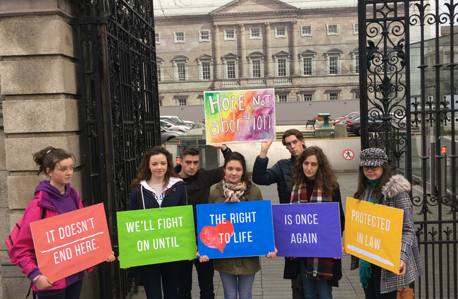 Pro-Life campaigners outside Leinster House. TheJournal.ie/Andrew Roberts