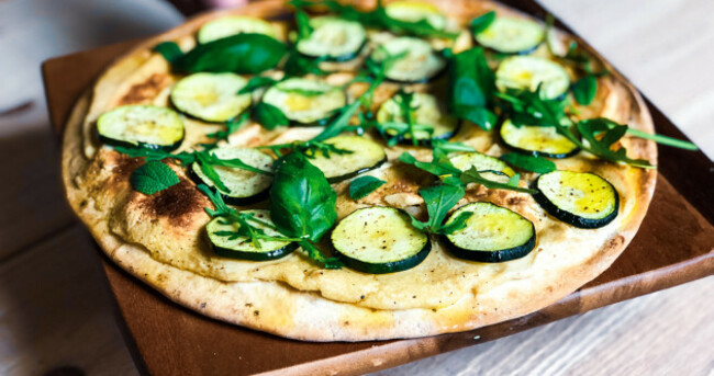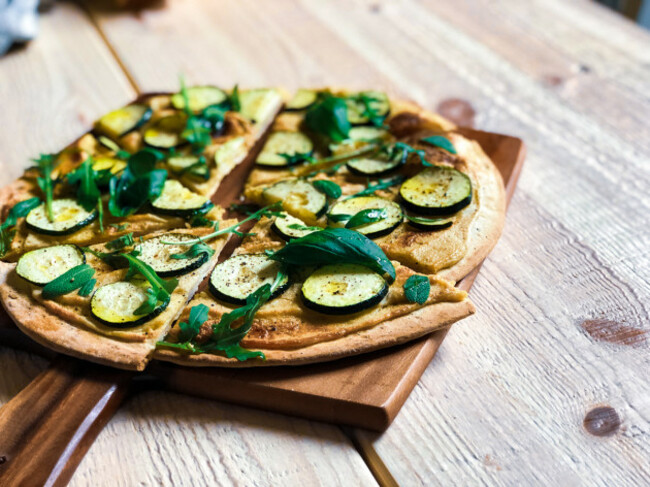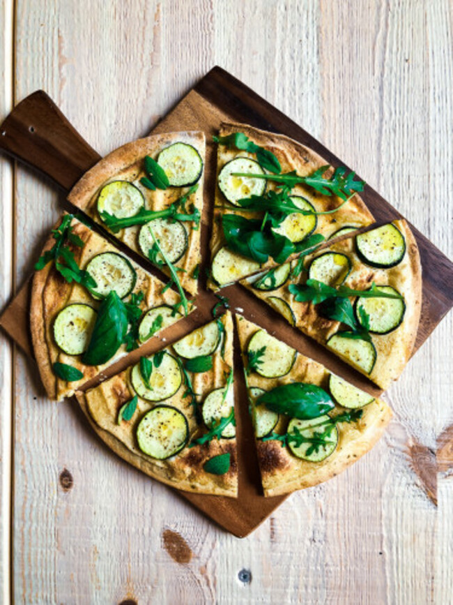 There’s fewer things more simple and satisfying than pizza – and the great news is that everyone can enjoy it! Cashew cream is a wonderful substitute for the traditional white sauce on a bianca (white) pizza and it goes deliciously with the courgette here as it’s fresh with a backnote of fiery garlic.