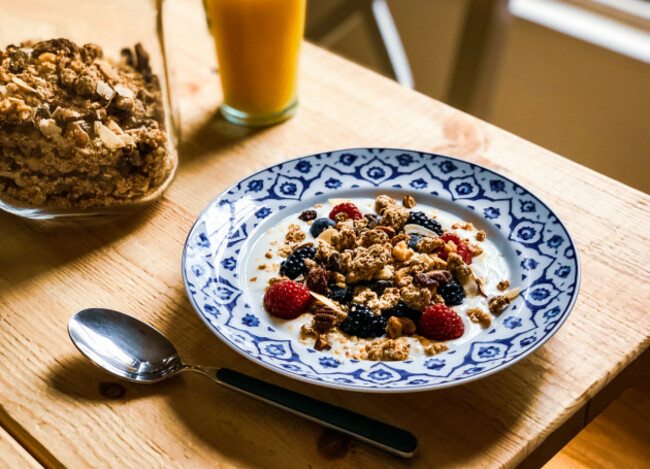 5. When cooling, add in your fruit and/or coconut and stir through well, before filling your jar and enjoy every day. It’s a gorgeous breakfast, served with some berries and dairy-free yoghurt!