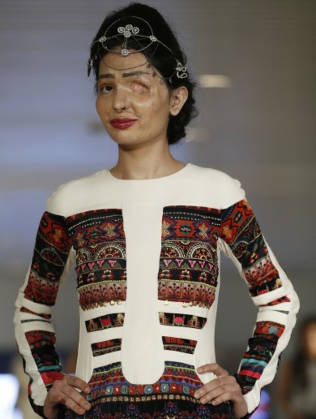 Model and acid attack victim Reshma Querishi models the Archana Kochhar collection. Mary Altaffer