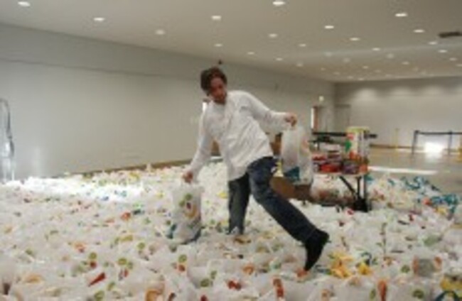 A volunteer fills goodie bags for a Christmas party for the homeless last year. Julien Behal/PA Wire