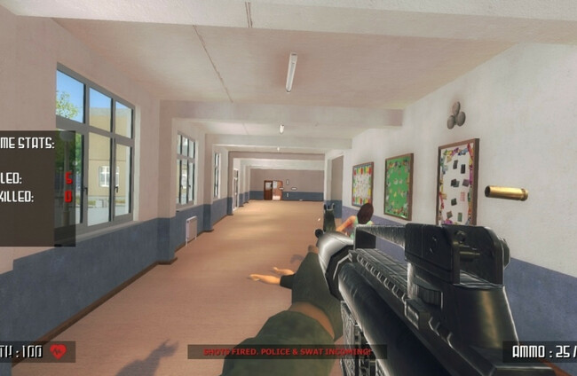 The game allows players to re-create school shootings by stalking school hallways and racking up kills.