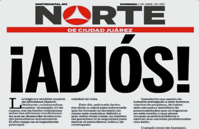 “This newspaper that you have in your hands will be the last print edition that NORTE of Ciudad Juarez will publish.”