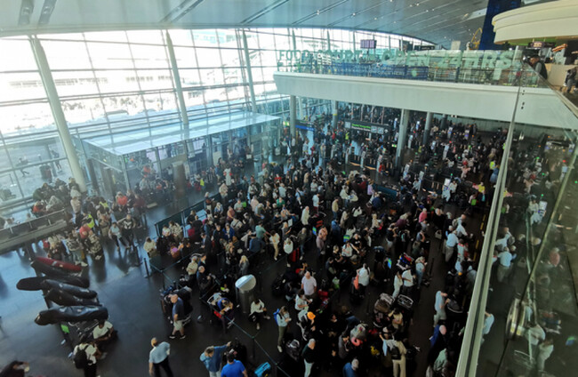 Thousands of passengers queue in Terminal 2 last Saturday Sam Boal