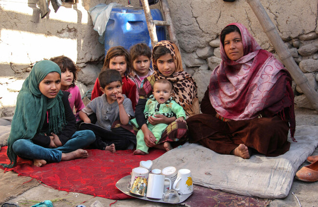 File photo of a widow sitting next to her daughters in her mud-walled house in the women's village of Sanabad, southwest of Kabul, Afghanistan. Christine-Felice Röhrs/DPA/PA Images