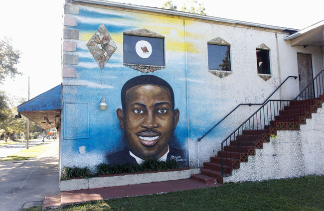 A mural of Ahmaud Arbery is painted on the side of The Brunswick African American Cultural Center in downtown Brunswick, Georgia Alamy Stock Photo