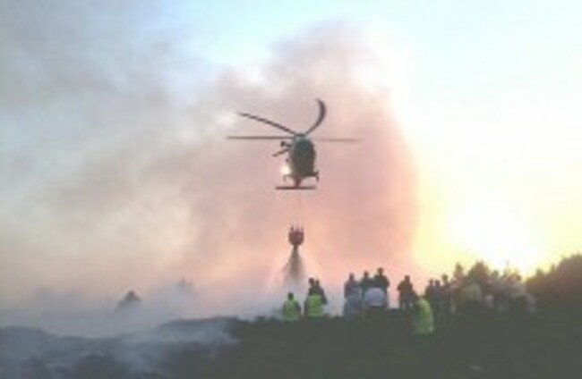 The Air Corps AW 139 helicopter, fitted with a specialist under slung Bambi Bucket, began is dropping water on fires near Glengesh at approximately 10 am. So far, it has dropped a total of 21,000 litres of water in 17 sorties on fires in accessible terrain, according to the Defence Forces.