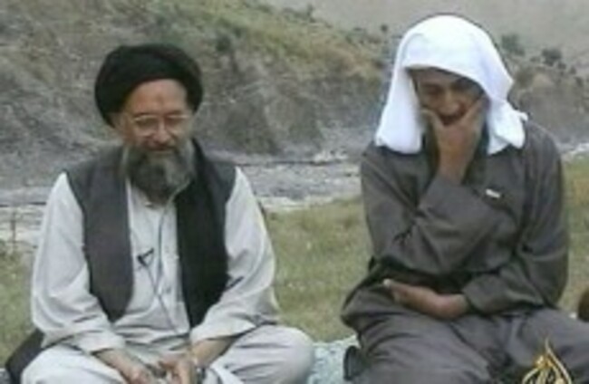 In this file television image from Arab satellite station Al-Jazeera, Osama bin Laden, right, listens as his top deputy Ayman al-Zawahri speaks at an undisclosed location. TEL/AP/Press Association Images
