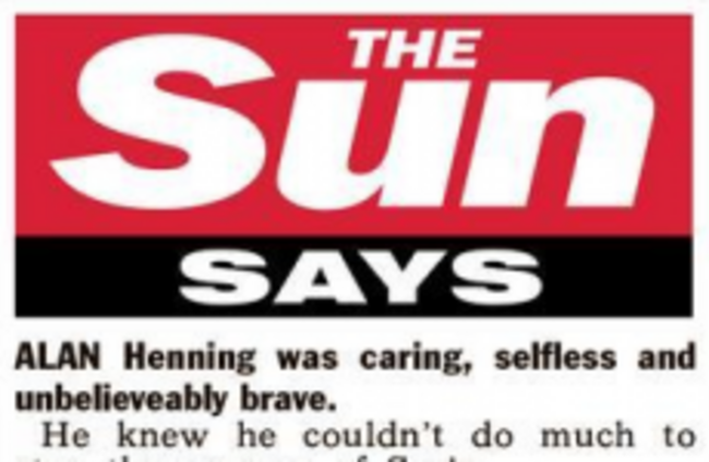 THE SUN NEWSPAPER has published a short editorial explaining why it will not be publishing images captured from the video of Alan Henning’s execution.