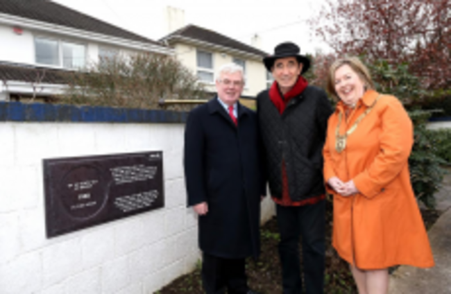 Albie Sachs with Tánaiste Eamon Gilmore and Dun Laoghaire-Rathdown Cathaoirleach Councillor Carrie Smyth outside the house in Foxrock, Dublin, where South Africa’s Bill of Rights was written more than 20 years ago. Department of Foreign Affairs