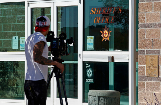 A news cameraman records the entrance of the Santa Fe County Sheriff office Andres Leighton via PA Images